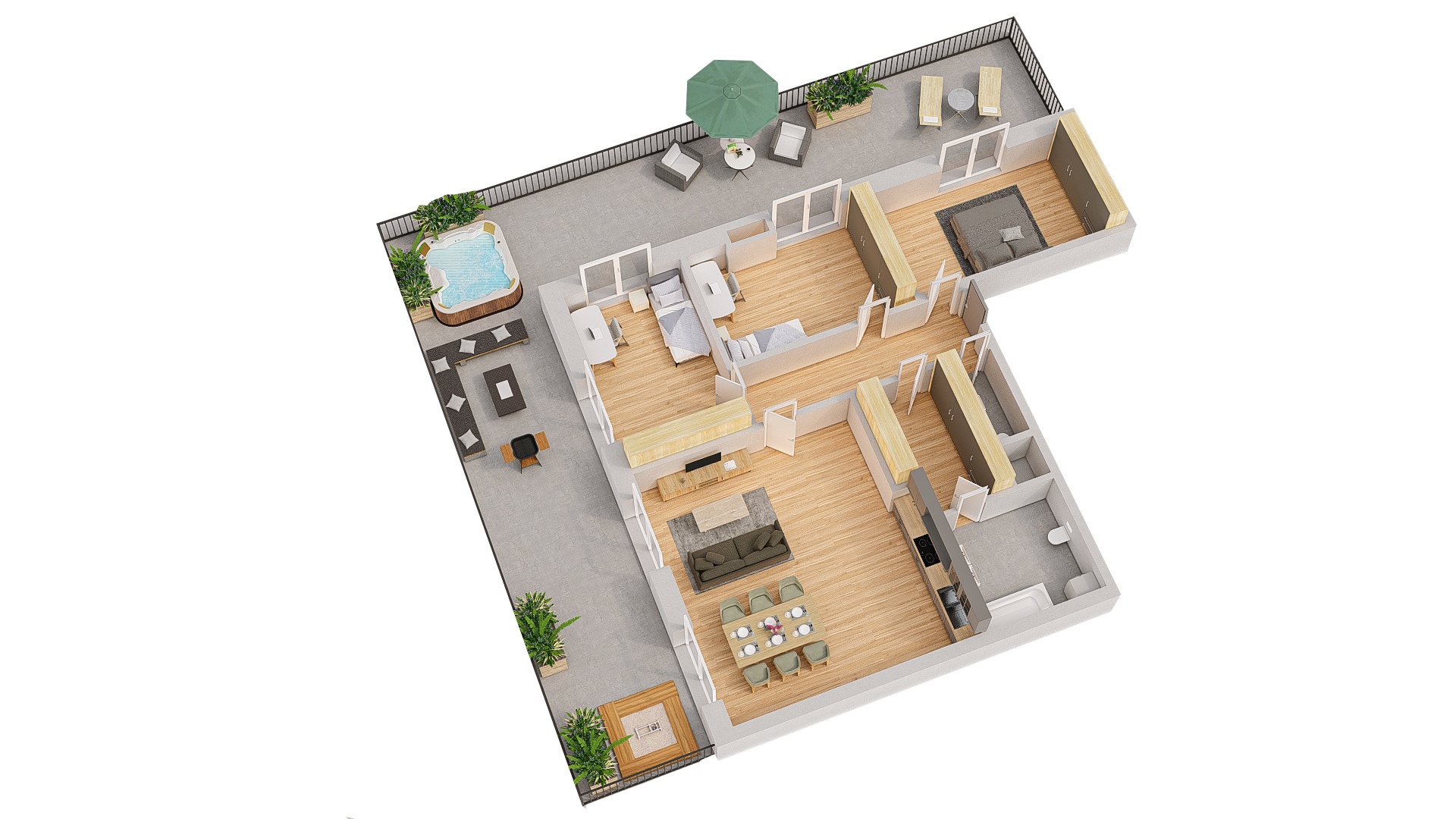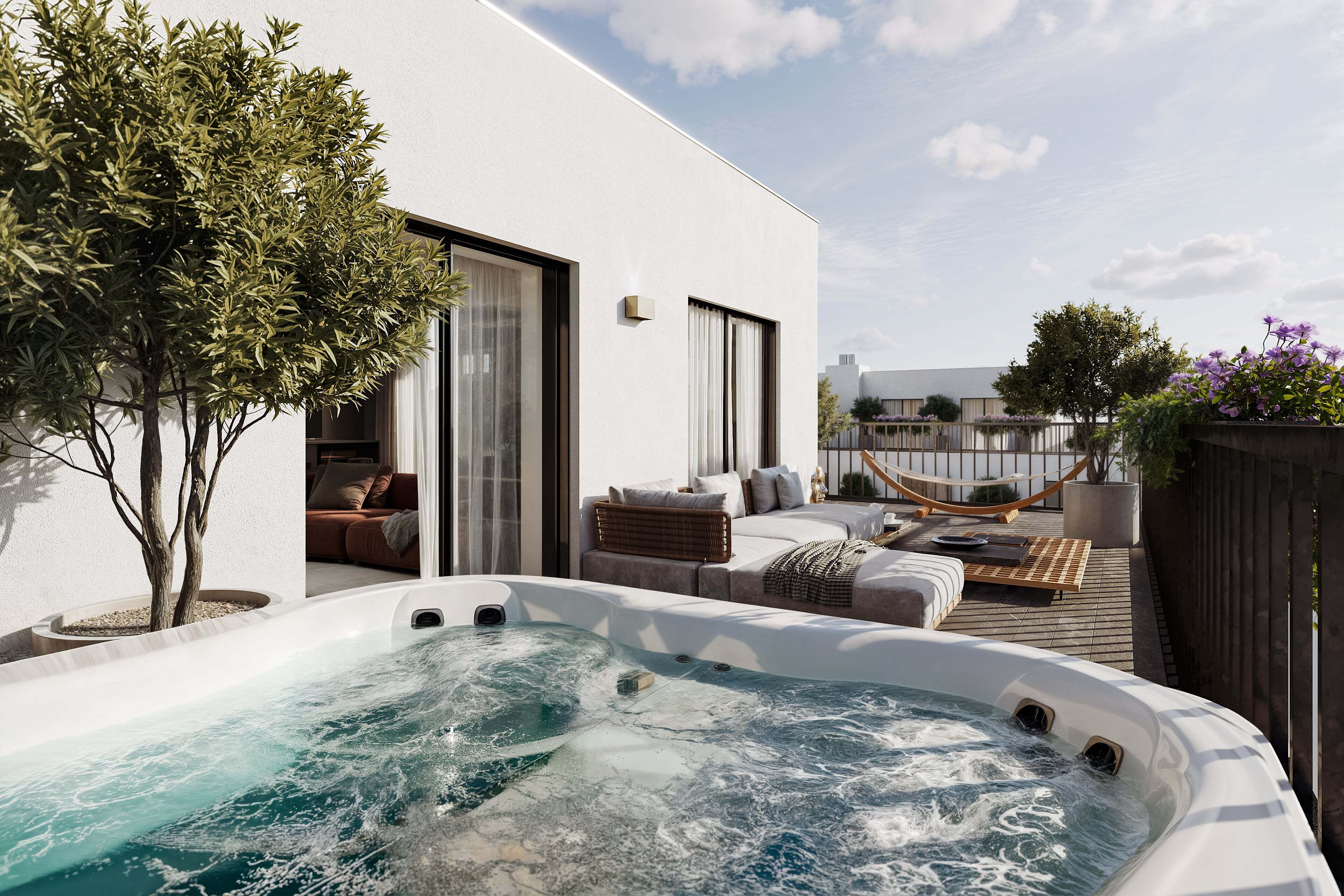 Эта просторная квартира расположена на верхнем этаже дома и предлагает просторную гостиную площадью почти 37 м². Также в ней есть три спальни размером 14–16 м², которые обеспечивают достаточно места для комфортного семейного проживания. Среди главных преимуществ квартиры можно отметить обилие мест для хранения и огромную террасу с прекрасным видом на окрестности. Квартира предлагается в состоянии shell & core, то есть без финальной отделки. Будущие владельцы смогут завершить интерьер полностью в соответствии со своими идеями и потребностями.